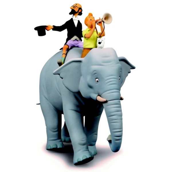 Tintin et le professeur Siclone sur l’éléphant